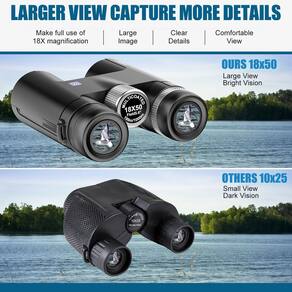 binóculos - Binóculos, binóculos grandes de 19 mm, com ampliação de alta potência de 18X e lentes objetivas de 50 mm, oferecem um grande campo de visão de 121,6 m/1000 m, proporcionam detalhes de imagem grandes e claros. - Binóculos para adultos, binóculos de lente prisma BAK4 de 17 mm adotam lentes totalmente revestidas e prismas revestidos de fase, que aumentam a transmissão de luz dos binóculos para 99,9%. torna a imagem mais transparente, mais clara e mais brilhante. - Binóculos à prova d'água, à prova d'água IPX7 e à prova de neblina, uma estrutura de policarbonato blindada de borracha protege seus binóculos de danos, à prova d'água - binóculos de proteção perfeitos e resiste às condições climáticas mais difíceis. Eles também evitam o embaçamento interno das lentes. - Binóculos para observação de pássaros, os binóculos de observação de pássaros vêm com um novo adaptador de telefone e um tripé para que você possa estabilizar seu telefone para tirar fotos mais claras e bonitas. Capture os momentos maravilhosos e compartilhe com seus amigos. - Binóculos HD de alta potência, design leve e portátil. Nossos binóculos profissionais para adultos e crianças são fáceis de usar, focados com ou sem óculos. Ajuste flexível, nossos binóculos oferecem binóculos de alta qualidade.