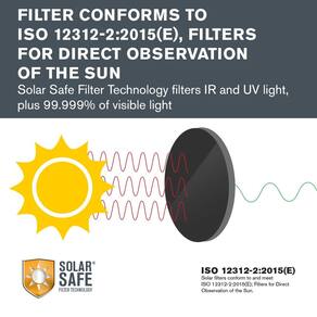 - Os filtros solares de vidro não removíveis de lente dupla atendem totalmente à ISO12312-2 - Visualização segura do sol quando s de acordo com as instruções incluídas