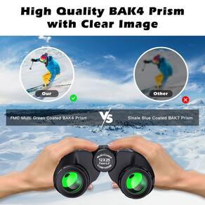 Os binóculos pequenos de 30 x 63 cm para caça são instrumentos potentes, leves e duráveis, perfeitos para observação de pássaros, observação da natureza, safári e outras atividades ao ar livre. Com ampliação de 12x e uma lente objetiva de 25 mm clara, brilhante e multirevestida, nossos pequenos binóculos de alta potência oferecem excelente qualidade de visualização. O corpo é ergonomicamente projetado para manuseio confortável, e a roda de foco central e o design dobrável fornecem um campo de visão confortável para horas de observação. Estes pequenos binóculos de viagem são tão leves e compactos que também são perfeitos para crianças que querem usá-los para caça ou outros esportes ao ar livre. Ótica totalmente multirevestida proporciona imagens mais brilhantes e nítidas. Todas as superfícies de vidro desses mini binóculos de alta potência para adultos são revestidas com várias camadas, resultando em 96,48% de transmissão de luz para imagens brilhantes, nítidas e de alto contraste, bem como aberração não cromática. Além disso, estes binóculos leves para caminhadas oferecem visão noturna com pouca luz. Os binóculos compactos leves para adultos apresentam um design leve e peso de apenas 300 g, tornando-os do tamanho da palma da mão para dobrar, tornando-os ideais para uma ampla variedade de atividades de longa distância. Contanto que você tenha binóculos compactos para adultos em sua mochila, relaxe em uma viagem com estes binóculos compactos para observação de pássaros. O design ergonômico emborrachado e a aderência robusta permitem foco preciso e fornecem resistência a choques e recursos antiderrapantes, mantendo um design fino e direto. A estrutura emborrachada do alívio ocular oferece conforto para usuários de óculos, assim como o anel de ajuste de dioptria e o suporte da correia. Binóculos para adultos e crianças. Os melhores binóculos compactos são totalmente capazes e funcionam bem para observação de pássaros, caça, caminhadas, viagens, eventos esportivos, teatro e shows. Ótimas ideias de presente para meninos e meninas no Natal, Dia dos Pais e aniversários. - ?Fácil de focar?: Prepare-se para sua próxima aventura ao ar livre com pequenos binóculos de caça de 30 x 63 cm. Com um botão de foco central suave e lente do olho direito, é fácil de focar. Com um revestimento de borracha impermeável e antiderrapante, estes binóculos de observação de pássaros são perfeitos para qualquer atividade ao ar livre. Com visão noturna com pouca luz (não para escuridão completa), estes pequenos binóculos são perfeitos para viagens, shows, observação de pássaros, caminhadas, caça e muito mais. - Prisma de teto BAK-4 + lente FMC visão clara?: Desfrute de vistas brilhantes e nítidas com nossos mini binóculos de 12 x 25 mm para adultos e crianças, com prismas BAK-4 e lentes FMC. As lentes são feitas com filme verde de banda larga multicamadas FMC óptica, oferecendo uma transmitância de 99,58% para imagens brilhantes e de alto contraste sem aberração cromática. Com um amplo campo de visão e ampliação poderosa, você não perderá nada! - ?Binóculos grandes e poderosos?: Experimente visualização de alta definição com nossos pequenos binóculos potentes de 12 x 25 mm para adultos, oferecendo uma imagem clara e nítida sem qualquer distorção de cor ou desfoque. Com uma ampliação de 12x, estes pequenos binóculos compactos para adultos oferecem um campo de visão de longo alcance de 383t/1000 metros, permitindo que você capture todos os detalhes ao assistir pássaros ou assistir a shows. - ?Binóculos para adultos e crianças?: nossos binóculos HD se encaixam perfeitamente em adultos e algumas crianças, vêm com óculos ajustáveis para uso confortável com ou sem óculos. A função dobrável torna os binóculos fáceis de focar para obter uma imagem nítida, muito simples de operar até mesmo por crianças. - ?Presentes ideais para grandes dias?: Procurando o presente perfeito para um ente querido? Não procure mais do que pequenos binóculos de bolso! Ideal para o Natal, aniversários, dia dos pais e outros feriados, eles vêm com uma bolsa de transporte, alça de pescoço, manual e pano de limpeza.