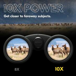 PROSTAFF P3 8x42. As objetivas frontais de 42 mm em tamanho real coletam o máximo de luz para uma visão mais clara e clara, mesmo quando a luz do dia está diminuindo. A ampliação de 8x fornece um amplo campo de visão que mostra mais da cena e também é mais fácil de manter estável, ideal para localizar a vida selvagem ou usar binóculos em qualquer lugar. Um design à prova d'água, à prova de neblina e resistente a quedas significa que você pode levá-los a qualquer lugar, e a renomada ótica Nikon torna cada vista espetacular. Esteja você viajando de mochila às costas, observando pássaros ou observando seu time favorito, os binóculos PROSTAFF P3 oferecem
