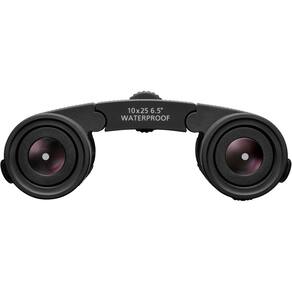 As grandes lentes objetivas de 25 mm com revestimento multicamadas maximizam a transmissão de luz, produzindo imagens brilhantes e claras mesmo em condições de pouca luz. As oculares de borracha com ajuste deslizante e múltiplas posições de clique permitem que o usuário ajuste facilmente a distância dos olhos, garantindo um campo de visão completo com ou sem óculos.