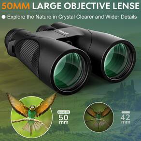 -?Binóculos para adultos com lente objetiva de 50 mm?Nossos binóculos para adultos têm uma lente objetiva maior de 50 mm que permite a entrada de mais luz, produzindo imagens mais brilhantes, claras e detalhadas. Seja observando a vida selvagem ou observando pássaros, nossos binóculos para adultos com lente objetiva de 50 mm coletam mais luz e podem fornecer imagens mais claras e brilhantes mesmo sob condições de pouca luz, tornando-os a escolha ideal para observação ao amanhecer ou ao entardecer.