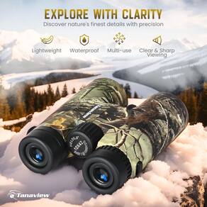 O binóculo Tanaview 10x42 para adultos e crianças foi projetado para oferecer um desempenho óptico muito dedicado, garantindo que você veja objetos com clareza e detalhes incomparáveis. Nosso binóculo de caça de 10x42, com uma poderosa ampliação de 10x, objetos distantes entram em foco nítido, revelando todas as distinções do objeto. Este binóculo para adultos de alta potência tem lentes objetivas grandes de 42 mm. O binóculo de observação de pássaros para adultos reúne muita luz, fornecendo imagens brilhantes e vívidas mesmo em condições de pouca luz. Com óptica multirrevestida, esse binóculo minimiza o brilho e maximiza a transmissão de luz, resultando em vistas nítidas e realistas. Esteja você observando pássaros, caçando ou participando de um evento esportivo, este binóculo 10x42 proporcionará uma excelente experiência de visualização.
