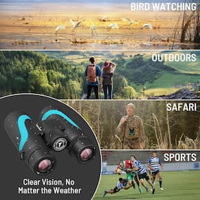 Binóculos HD 15 x 55 para adultos de alta potência, binóculos grande angular de 8°, 367/1000 metros, lentes BAK4 Prism FMC, binóculos IPX7 à prova d'água para observação de pássaros, caminhadas, viagens, esportes com adaptador de telefone (azul) - Experiência de visualização de alta potência: com um campo de visão grande angular de 8° e ampliação de 15x, esses binóculos oferecem um grande campo de visão de 112 m/1000 metros. Eles fornecem imagens detalhadas e nítidas, não deixando nada oculto. Experimente o brilho da natureza com uma ótica incomparável e uma visão grande-angular, perfeita para observação de pássaros, fuzileiros navais e eventos esportivos. - Desempenho óptico superior: lentes objetivas de 55 mm para clareza excepcional, fidelidade de cor e nitidez. Lentes totalmente multirevestidas com revestimentos antirreflexo garantem a máxima transmissão de luz e o revestimento resistente a arranhões protege contra arranhões, óleo e sujeira. Os prismas BAK4 restauram a cor e reduzem as bordas escuras, podem proporcionar uma visão mais brilhante em condições de luz difíceis. Perfeito para caça ou shows. - Uso versátil: perfeito para observação de pássaros, caminhadas, viagens, observação de estrelas, eventos esportivos e observação marinha. Com ampliação clara, eles melhoram as experiências ao ar livre oferecendo vistas mais próximas da vida selvagem, marcos, corpos celestes, ação esportiva e vida marinha, enriquecendo a exploração e descoberta. Capture e compartilhe facilmente suas visualizações com o adaptador de telefone incluído, permitindo que você tire fotos e vídeos através dos binóculos. - À prova d'água IPX7: IPX7 à prova d'água e à prova de neblina é ideal para atividades ao ar livre; a armadura de borracha oferece uma aderência segura e antiderrapante e proteção externa durável. As vedações de purga de argônio e anel de vedação fornecem desempenho à prova de água e neblina em todos os ambientes. - Visualização confortável: gire os óculos para cima e para baixo para ver o mundo com ou sem óculos - faixa de alívio ocular de 13,6 mm a 19,6 mm. Ajuste a roda de foco central para permitir que os binóculos se ajustem facilmente aos seus olhos. Seja para aniversários, feriados ou ocasiões especiais, este telescópio certamente impressionará e encantará os destinatários de adultos, usuários de óculos, crianças ou todas as idades.