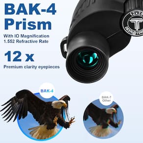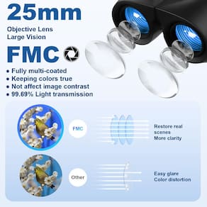 - Binóculos HD de alta potência: binóculos com ampliação de 12x, lente objetiva de 25 mm e amplo campo de visão, 363 pés/1000 jardas, permitindo que você veja mais longe e mais longe. Com revestimento de banda larga FMC e prismas BAK4 premium para garantir imagens realistas.