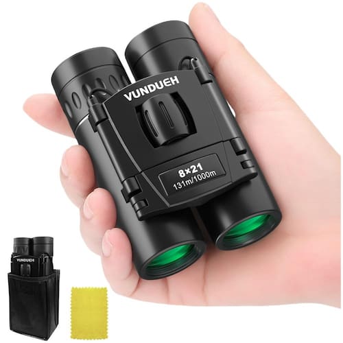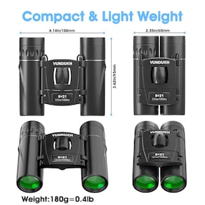 - ?Adequado para adultos e crianças? – Os mini binóculos compactos têm apenas 150 g, quebrando a estrutura tradicional grande. Eles são pequenos o suficiente para caber em um bolso ou bolsa de viagem. Os binóculos vêm com sua própria alça de pescoço, pano de limpeza e estojo de transporte. Você pode usá-los em qualquer lugar, a qualquer hora sem ser amarrado.