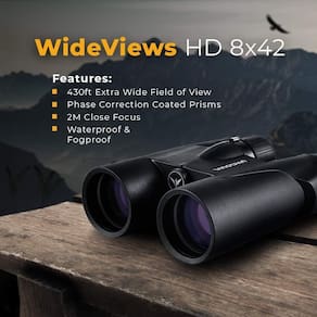 - FOCO PRÓXIMO: observe detalhes finos das penas tremulando na brisa. Esses binóculos leves para adultos apresentam um foco próximo de 2 m, deixando você incrivelmente perto da ação. Desfrute de binóculos poderosos para vistas de longa distância e close-ups deslumbrantes com facilidade.