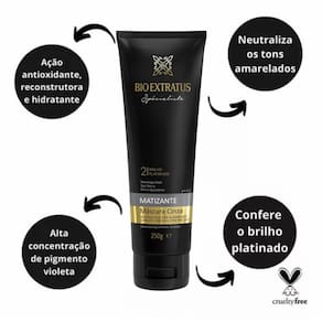 Benefícios da Máscara cinza: A Máscara Bio Extratus Spécialiste Matizante Cinza foi desenvolvida para proporcionar uma profunda hidratação dos fios danificados e ressecados. Sua fórmula com alto poder de tratamento que combina a ação antioxidante, reconstrutora e hidratante dos ativos naturais, promovendo um tratamento completo dos fios.