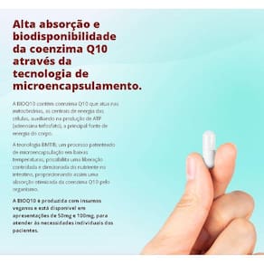 A BIOQ10 é produzida com insumos veganos e está disponível em apresentações de 50mg e 100mg, para atender às necessidades individuais dos pacientes.