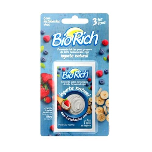 Bio Rich é um fermento lácteo probiótico especialmente desenvolvido para a produção caseira de iogurte natural. Contém bifidobactérias e lactobacilos vivos que ajudam a regular a flora intestinal.