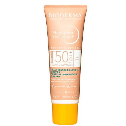 Photoderm Cover Touch FPS 50+ é a 1ª² proteção mineral da BIODERMA com cobertura total¹ especialmente formulada para peles oleosas. Sua textura revolucionária oferece proteção e cobertura de longa duração em uma fórmula leve e minimalista que deixa a pele respirar, mantendo-a uniforme, confortável e livre de oleosidade o dia todo³. Com filtros e pigmentos 100% físicos e minerais, Photoderm Cover Touch FPS 50+ oferece muito alta proteção contra a radiação UVB, UVA e luz visível. Dia após dia, Photoderm Cover Touch FPS 50+ reduz a oleosidade³ através da patente Fluidactiv™, prevenindo o surgimento de novos cravos e espinhas. TEXTURA REVOLUCIONÁRIA: rede de ativos esféricos que uniformiza totalmente deixando a pele respirar, com pigmentos que se dispersam perfeitamente para uma cobertura total que não obstrui os poros, não craquela e não acumula em linhas de expressão. Alta fixação mesmo em condições extremas: fórmula muito resistente à água, suor e calor. Não transfere e não derrete ao longo do dia, com 08h de efeito base com controle do brilho e da oleosidade³. Cor ideal para peles morenas (cor dourada).