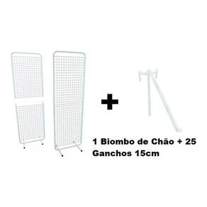 1 Biombo De Chão Expositor Aramado + 25 Ganchos de 15cm
