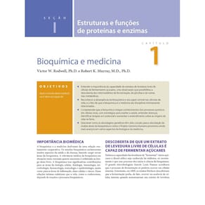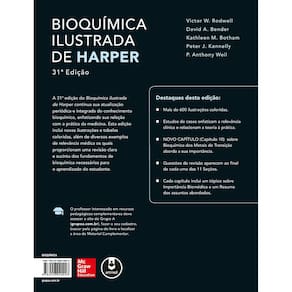 A 31ª edição do Bioquímica ilustrada de Harper continua sua atualização periódica e integrada do conhecimento bioquímico, enfatizando sua relação com prática da medicina. Esta edição inclui novas ilustrações e tabelas coloridas, além de diversos exemplos de relevância médica, os quais proporcionam uma revisão clara e sucinta dos fundamentos de bioquímica necessários para o aprendizado do estudante. Destaques desta edição: Mais de 600 ilustrações coloridas; Estudos de casos enfatizam a relevância clínica e relacionam a teoria à prática; Novo capítulo (Capítulo 10) sobre Bioquímica dos Metais de Transição aborda a sua importância; Questões de revisão aparecem ao final de cada uma das 11 Seções; Cada capítulo inclui um tópico sobre Importância Biomédica e um Resumo dos assuntos abordados.