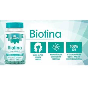 A biotina é uma vitamina hidrossolúvel essencial para vida de todos os organismos e pode ser conhecida como vitamina H ou vitamina B7. A BIOTINA desempenha funções importantes no nosso corpo eatua no metabolismo dos alimentos (proteínas, carboidratos e gorduras) para converter em energia, além da manutenção dos cabelos, das unhas e da pele. A Biotina promove a beleza dos cabelos, uma pele saudável e unhas mais resistentes.