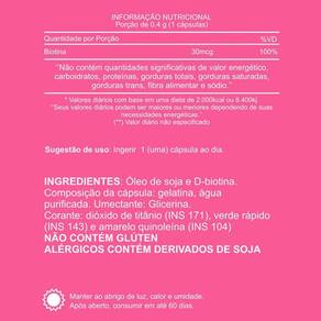 A biotina também conhecida como vitamina B7, é uma vitamina essencial e hidrossolúvel. Apresenta como objetivo principal contribuir para a manutenção do cabelo e da pele, além de auxiliar no metabolismo energético e dos macronutrientes proteínas, carboidratos e gorduras. Marca: Nutrilume Caps