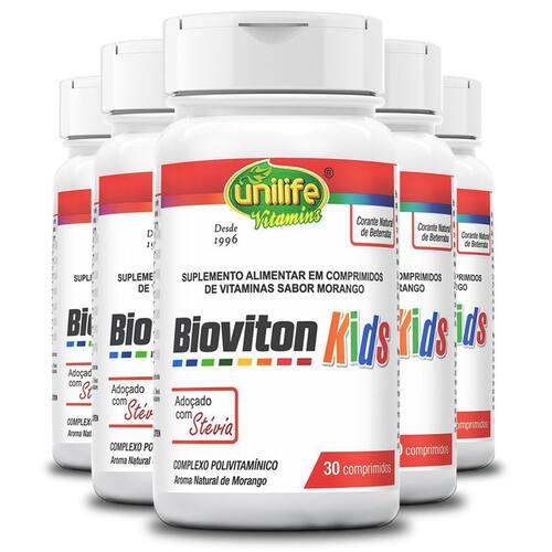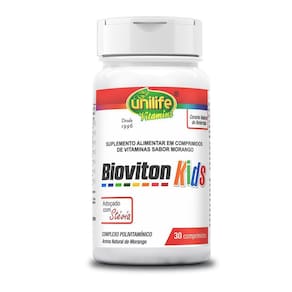O Bioviton Kids Unilife Vitamins é um suplemento BIOKOSHER, desenvolvido a partir de uma formulação com dosagens de vitaminas e minerais voltados para a população KIDS. Contém aroma natural de morando e corante natural de beterraba. - Modo de usar Sugere-se a ingestão de 1 comprimidos ao dia, mastigável ou ingerido com líquido após a refeição. Livre de glúten e lactose.