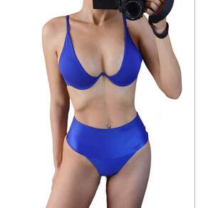 Este modelo de calcinha de Bíquini possui cintura alta em tecido poliamida forte e elástico que busca cobrir flancos e a parte baixa da barriga. Além disso, o bíquini é fio dental, e fio duplo.