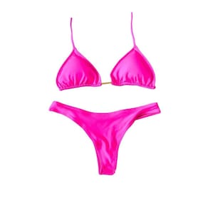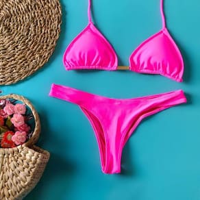 Biquíni Cortininha Pink Liso, Calcinha fio Dental