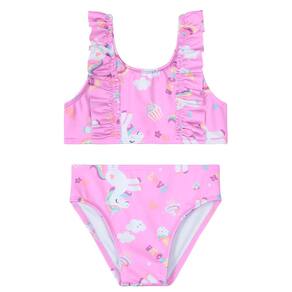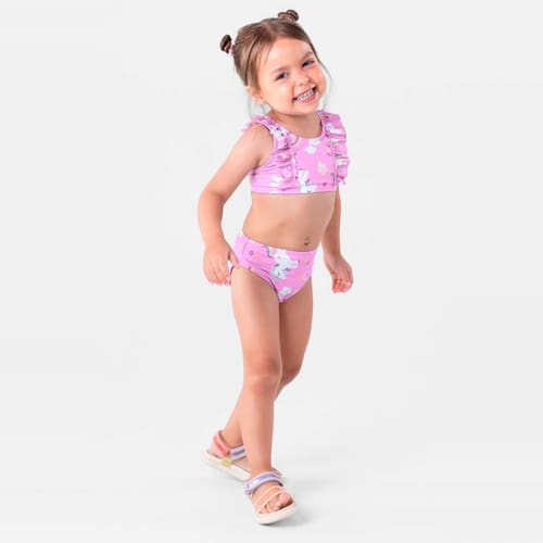 Prepare sua pequena para os dias ensolarados na praia ou na piscina com este adorável biquíni infantil menina beach wear composto por top e calcinha em malha UV. O top possui alças largas com babados, decote U e estampa rotativa, já a calcinha também com estampa rotativa. Com alta qualidade, este conjunto oferece conforto, estilo e proteção contra os raios solares nocivos.
