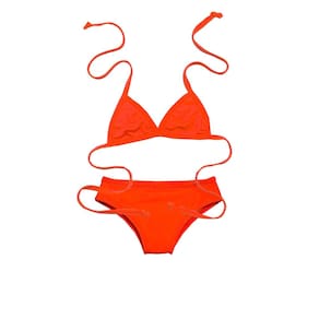 Além disso, a cor laranja é uma escolha divertida e cheia de energia, perfeita para refletir o espírito alegre e brincalhão das crianças. Combinado com detalhes como lacinhos ou estampas, este biquíni é um verdadeiro destaque de estilo, tornando as meninas o centro das atenções em qualquer ambiente de verão.