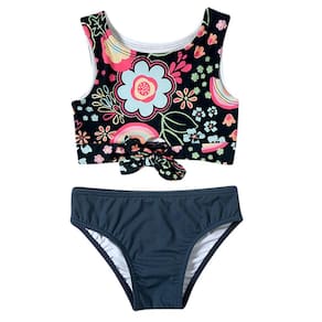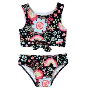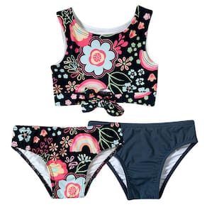 1 Biquíni, 2 looks! Conjunto com 3 peças. Composto de um top e duas calcinhas, este biquíni Floral Arco-Íris da Tip Top é de arrasar. Possui proteção solar FPS 50+ permanente, para as meninas poderem aproveitar o verão com total segurança e conforto.