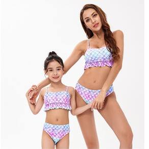 Biquíni Mãe e Filha Escamas Lilás Azul com Babados