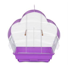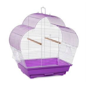 Prevue Pet Products Palm Beach Scallop Roof Budgie Cage Purple & White SP21003P/W is a charming and colorful cage for your small bird. Full of owner, and bird, friendly features our scallop roof cage has been expertly designed in the USA and comes complete with two hooded plastic exterior food & water cups held in place with spring loaded hinged doors, two wood perches, a bottom grille plus a color coordinated pull-out tray and base. 3/8' wire spacing is suitable for small birds such as finches, canaries and budgies. A landing style door gives you controlled access to the cage interior and the scalloped roofline provides additional space for hanging toys. Finished with a durable and non-toxic powder coating, Prevue cages undergo independent lab testing and conform to the highest levels of pet safety. Prevue Pet Products Palm Beach Scallop Roof Budgie Cage Purple & White SP21003P/W measures approximately 14' long, 11' wide and 18 ' high with 3/8' wire spacing.