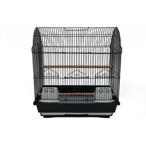 Espaçamento de barra de 0,9 cm gaiola de pássaro pequena no topo do celeiro em preto. Vem com porta elevadora, 2 portas alimentadoras e 2 copos, 2 poleiros, caixa de metal removível e bandeja de plástico inferior deslizante. A dimensão da gaiola é 40,6 cm C x 30,5 cm D x 43 cm A.