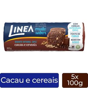 5 Pacotes de Biscoito Integral Linea Cacau e Cereais Peso Liquido total: 600g.