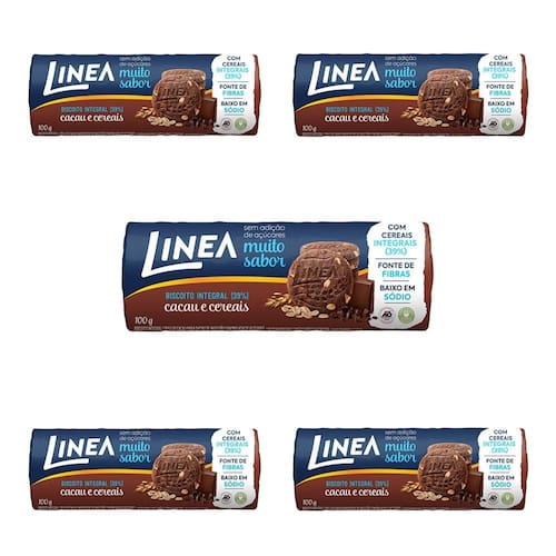 5 Pacotes de Biscoito Integral Linea Cacau e Cereais Peso Liquido total: 600g.