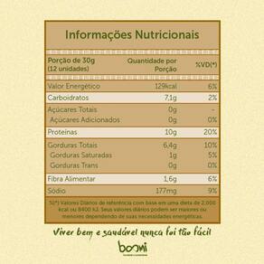 Ingredientes: mix de proteína fava + ervilha , aipim, farinha de mandioca, azeite de oliva extravirgem, farinha integral de amêndoas, lecitina de girassol e/ou lecitina de soja não-transgênica, polvilho azedo, sal marinho integral, goma guar, goma xantana, açafrão cúrcuma , aroma natural de queijo parmesão, aromatizante natural extrato de alecrim e extrato de levedura. Não contém glúten.