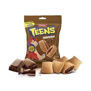 Caixa contendo 8 pacotes de biscoito recheado Teens sabor artificial de chocolate enriquecido com Vitaminas e Mineral, com 30 gramas cada. Peso líquido 240 gramas.