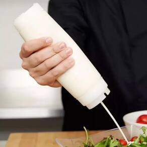 Bisnaga Para Molho Invertida 600ml Com Válvula Vermelha Aumente a produtividade e a higiene da sua cozinha com a Bisnaga Dosadora Invertida 600ml com Válvula Vermelha. Ideal para restaurantes, lanchonetes, hamburguerias e cozinhas domésticas, essa bisnaga proporciona aplicação uniforme de molhos, caldas e temperos sem desperdício. Seu design invertido com bico dosador com válvula permite uso prático e seguro, além de reduzir o risco de contaminações e manter a bancada sempre limpa. Descrição Técnica: Capacidade: 600ml Material: Plástico flexível de alta resistência Cor: Transparente com tampa e válvula vermelha Sistema: Invertido com válvula dosadora de silicone antivazamento Indicação de uso: Molhos, condimentos, caldas, mostarda, ketchup, maionese e muito mais Benefícios: Aplicação precisa e uniforme Reduz desperdícios e evita sujeira Fácil de apertar, mesmo com uso prolongado Armazenamento prático pode ser mantida em pé pela base ou pela tampa Ideal para ou doméstico Marca: Não Informado Ean: 7897659618747