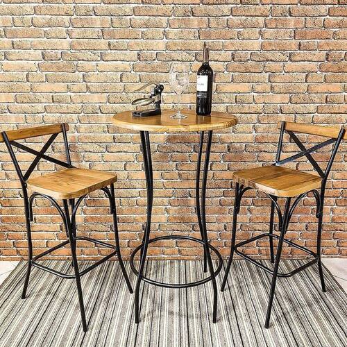 Bistrô com 3 banquetas de madeira - Lais - Metal Art