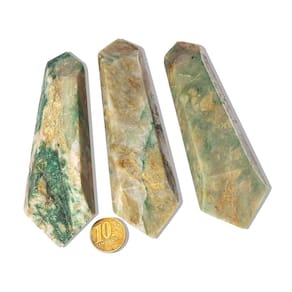 Descubra o poder transformador do Jade, uma pedra natural que irradia energias de equilíbrio e harmonia. Este cristal Vogel Bi-Terminado, com lapidação de 6 Facetas e ponta dupla, foi projetado para maximizar a fluidez energética, oferecendo proteção suave contra influências externas, enquanto promove serenidade emocional e renovação energética. Ideal para aqueles que buscam fortalecer seu campo energético e criar um ambiente pacífico e revitalizante. Características da PeçaNome da Pedra: JadeCor: Tons de verde vibrante, com nuances claras e escurasLapidação: Vogel Bi-Terminado com 6 FacetasMedidas Aproximadas: 11 a 12cmPeso Aproximado: 140 a 160gOrigem: Brasil Propriedades Energéticas do JadeO Jade é uma pedra amplamente conhecida por suas propriedades, tranquilidade e equilíbrio. Com sua cor verde serena e textura suave, o jade é altamente valorizado por promover paz interior, estabilidade emocional e equilíbrio físico. Esta pedra também é reconhecida por sua capacidade de atrair prosperidade e harmonia, sendo uma excelente escolha para quem busca bem-estar e renovação espiritual. Por que escolher o Jade?O Jade é muito valorizado por suas qualidades de harmonia e proteção energética. Sua cor vibrante e energia suave a tornam uma pedra poderosa e eficaz para quem busca equilíbrio emocional e serenidade, além de proporcionar estabilidade em momentos de tensão. Além de seus benefícios energéticos, o jade também oferece uma estética refinada, tornando-se uma peça única e marcante em qualquer ambiente. Cuidados e AutenticidadePor se tratar de uma pedra natural, variações na tonalidade e pequenas inclusões são normais e garantem sua originalidade.Para manter seu brilho e energia, recomendamos limpeza periódica e exposição à luz solar para recarregar suas propriedades. Adquira já o seu Vogel em Jade e experimente a poderosa proteção energética, equilíbrio e serenidade que ele pode proporcionar! Marca: CristaisdeCurvelo