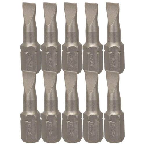 Bits Fenda Extra Hard S0,8x5,6 25mm 10 Unidades - 2607001462000 - Bosch Bits Fenda Extra Hard S0,8x5,5 25mm 10 Unidades - 2607001462 - BOSCH Descrição: - O aço modificado S2 e um processo de tratamento térmico otimizado resultam em qualidade extra dura para bom desempenho - A zona de torção cônica suporta facilmente os torques máximos, cumprindo todas as tarefas - Encaixe sextavado para máxima transferência de energia em brocas padrão de três mandíbulas e mandris de parafusadeira hexagonal.