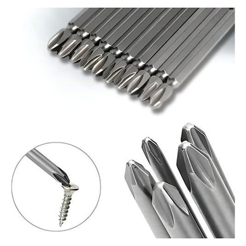 Melhore seu desempenho em parafusamentos com o Kit de 10 Bits PH2 100mm com Pontas Duplas Imantadas Esses bits são ideais para uso em parafusadeiras e furadeiras, oferecendo a praticidade de pontas duplas e a eficiência de extremidades imantadas.