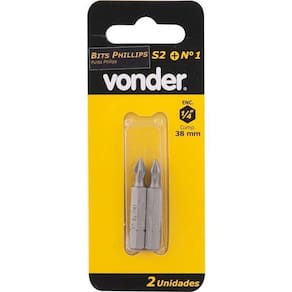 Conteúdo da embalagem1 Cartela com 2 bits/ponteiras fenda cruzada phillips Aplicações e dicas de usoIndicado para apertar e soltar parafusos com cabeça fenda cruzada phillips através de parafusadeiras e suportes manuais. Muito utilizado na área moveleira, automotiva, industrial, domicílios, entre outros.Destaques e diferenciaisFabricado em aço especial S2, que possui propriedades superiores em termos de resistência, aumentando a sua vida útil. Recebe ainda acabamento jateado, que proporciona ótima proteção contra oxidação. Facilita muito o trabalho de aperto e desaperto de parafusos, principalmente, quando utilizado em parafusadeiras. DETALHES TÉCNICOS Material do Bits ponteira: Aço S2 Especial Comprimento total do bits Phillips: 38 mm Número da ponta do bits Phillips: Nº2 - 1/4 Tipo do encaixe do bits: Sextavado - 1/4 Acabamento do Bits: Jateado