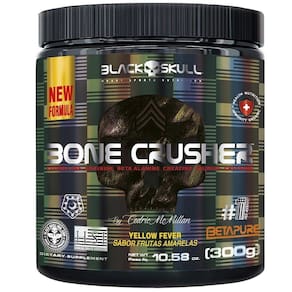 Black Skull Bone Crusher 300G - Frutas AmarelasPré treino black skull bone crusher 300gO bone crusher nova fórmula é um pré-treino composto por beta alanina, creatina, arginina, taurina e cafeína, ideal para dar um gás nos seus treinos e potencializar seus resultadosIngredientes:beta alanina, creatina monohidratada, arginina, taurina, cafeína anidra, c. Crispus invernal, acidulante ácido cítrico, aromatizantes, antiumectante dióxido de silício, edulcorante sucralose e corantes artificiais amarelo tartrazina e vermelho 40.Não contém glúten