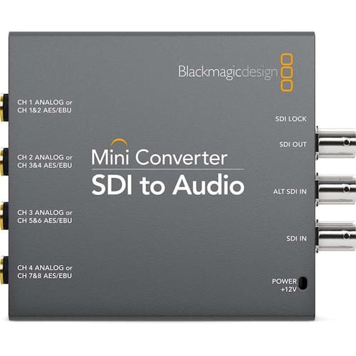 O blackmagic design convmcsaud inclui tudo o que você precisa para incorporar 4 canais de áudio analógico ou 8 canais de áudio digital aes / ebu a partir de qualquer conexão de vídeo sdi. Agora você pode acessar facilmente o áudio em qualquer conexão de vídeo sdi para saída para equipamentos de áudio, como mixers de áudio, decks de transmissão analógica, monitores de áudio e muito mais. Comutação automática sd e hd Os mini conversores alternam instantaneamente entre os formatos de definição padrão e de vídeo de alta definição, e a troca é automática quando a entrada de vídeo é alterada. Uma enorme ampla variedade de padrões de vídeo são suportados, incluindo, ntsc, pal, 1080i / 59.94, 1080i / 50, 1080p / 23,98, 1080p / 24, 720p / 59,94 e 720p / 50, além de novos formatos podem ser adicionados via usb. Avançada tecnologia sdi de 3 gb / s Somente os mini conversores incluem a mais recente tecnologia sdi de 3 gb / s, e as atualizações podem ser carregadas através da conexão usb integrada para futura compatibilidade de formato de vídeo. O sdi de 3 gb / s também é totalmente aplicável com todos os seus equipamentos sdi de definição padrão e alta definição. Fonte de alimentação internacional Ao contrário de outros conversores, uma fonte de alimentação universal está incluída com adaptadores de tomadas internacionais para todos os países. Isso permite que você leve mini conversores com você para qualquer local do mundo e conecte-Se diretamente aos soquetes de energia locais. Para impedir que a energia seja desconectada acidentalmente, um ponto de braçadeira de cabo é incluído para travar a conexão de energia com firmeza. Entrada sdi1 x sdi em bnc comutável entre 3g / hd / sd 1 x entrada redundante 3g / hd / sd-Sdi comuta automaticamente se a entrada sdi principal for perdida Entrada de áudio4 x 1/4 jacks suportam 4 canais de analógico balanceado, ou 8 canais de áudio digital aes / ebu balanceado Saída sdi1 x sdi em bnc comutável entre 3g / hd / sd Comutação automática sdiDetecção automática de 3g / 2k / hd / sd-Sdi Atualizações e configuraçãoVia usb 2.0 de alta velocidade 480 mb / s ReclockingSim Conformidade com sdiSmit 292m / 259m / 296m / 372m / 424m-B / 425m Itu-R bt.656 / bt.601 Taxas de vídeo sdiConexões de vídeo sdi são comutáveis entre hd e sd Amostragem de vídeo sdi4: 2: 2, 4: 4: 4 Amostragem de áudio sdiTaxa de amostra padrão de televisão de 48 khz e 24 bits Precisão de cor sdi4: 2: 2, 4: 4: 4 Espaço de cor sdiYuv, rgb Comutação automática sdiSeleciona automaticamente entre 3g / hd / sd Suporte a formato sdi1080p: 60/59,94 / 50/30 / 29,97 / 25/24 / 23,98 1080psf: 30 / 29,97 / 25/24 / 23,98 1080i: 60 / 59,94 / 50 720p: 60 / 59,94 / 50 525i: 59,94 ntsc 625i: 50 pal Suporte a formato 2k2k dci 25 P / 24 p / 23,98 p 2 k dci 25 p f / 24 p f / 23,98 pf Controle de softwareAtualização de software do os x e do windows via usb Atualização interna de softwareVia aplicativo de atualização incluído Sistema operacionalMac os x 10.11 el capitan, macos sierra ou posterior, Windows 8.1 ou windows 10 Controle de configuraçõesMini-Switches ou software usb Fonte de energiaFonte de alimentação universal de +12 v incluída, com adaptadores de tomadas internacionais para todos os países e ponto de amarração de cabos Consumo de energia8,4 w Faixa de tensão operacional12 vdc Temperatura de operação32 a 104 ° f / 0 a 40 ° c Temperatura de armazenamento-4 a 113 ° f / -20 a 45 ° c Humidade relativa0 a 90% sem condensação Não se trata de equipamento de frequencia, portanto não é necessário se enquadrar em nenhuma resolução da anatel Homologação Anatel: 080281811799