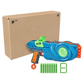 Nerf Elite 2.0 Flipshots Flip-8 Blaster com 8 barris de dardos que viram para dobrar seu lançamento, capacidade de 8 dardos, 8 dardos elite oficiais - Entre na batalha: o lançador Nerf Elite 2.0 Flipshots Flip-8 tem 8 canos, 4 virados para frente e 4 voltados para trás. Lance os dardos dos canos dianteiros, depois vire os canos traseiros para frente para continuar disparando - Capacidade de 8 dardos e 8 dardos NERF: cada um dos barris comporta 1 dardo, para uma capacidade total de 8 dardos. O lançador vem com 8 dardos de espuma Nerf Elite oficiais para carregar totalmente todos os 8 barris - BARRIS DE VISUALIZAÇÃO PARA TRAS: Solte 4 dardos seguidos dos canos voltados para a frente, depois puxe a mira para trás para virar os canos traseiros para frente e surpreenda a concorrência com outra explosão de 4 dardos - Alça de preparação para baixo: carregue dardos nos barris, puxe a alça de preparação, escolha seu alvo e pressione o gatilho para enviar dardos voando - EMBALAGEM SUSTENTÁVEL: Envio em embalagem simples e reciclável que é fácil de abrir e sem frustrações