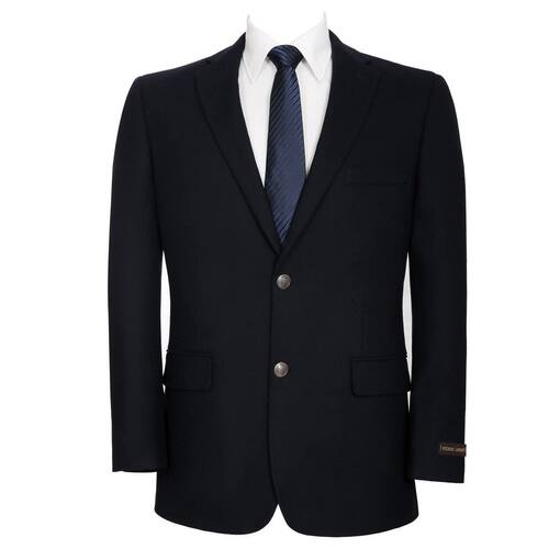 Blazer masculino AMY ZHU, mistura de lã, casaco esportivo com bolsos, ajuste clássico, jaqueta de dois botões para uso comercial e diário, azul marinho