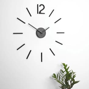 Os indicadores de tempo de metal do Blink e o número 12 são montados individualmente na parede com adesivo fácil de colar e o mecanismo do relógio é montado com um parafuso ou prego.