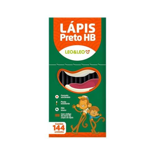 Blister 144 Lápis Grafite Hb Resina Preto Sextavado Leo&Leo