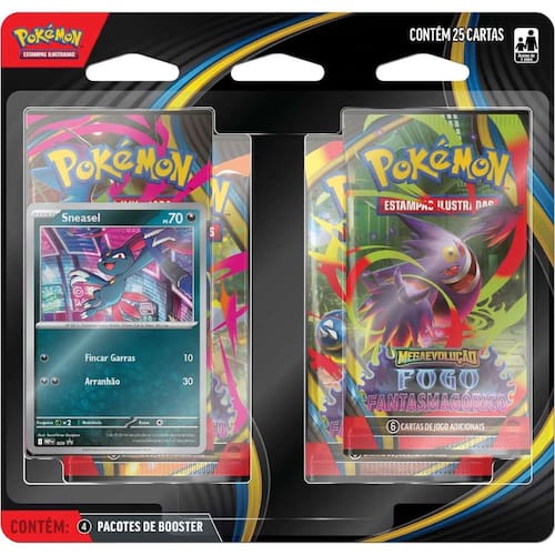 Com um calafrio intenso desafiando o calor, a figura sombria de Mega Gengar ex emerge lentamente, e os dois Pokémon se preparam para o combate. Dispostos a provar sua força, Mega Heracross ex, Mega Lopunny ex e muitos outros Pokémon se alinham para dar tudo de si na expansão Megaevolução — Fogo Fantasmagórico do Pokémon Estampas Ilustradas!