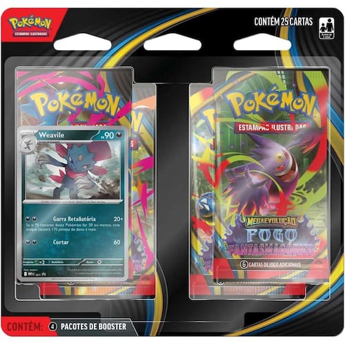 1 carta promocional de Weavile! 4 pacotes de booster de Megaevolução 02 Fogo Fantasmagórico do Pokémon Estampas Ilustradas!