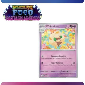 Blister Triplo: Fogo Fantasmagórico (Whimsicott) – O Charme Místico da Megaevolução! Explore o universo eletrizante das Mega Evoluções com o Blister Triplo Fogo Fantasmagórico, uma verdadeira joia para adeptos e disputantes do Pokémon Trading Card Game! Mergulhe na coleção que celebra o poder dos tipos Fogo e Fantasma, onde seres místicos e dragões colossais ditam o ritmo das batalhas mais intensas.