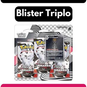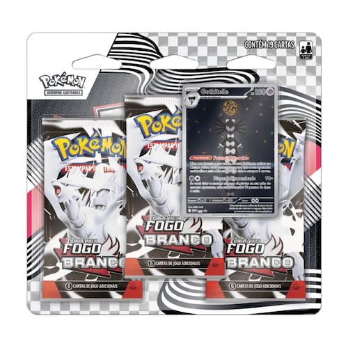 O que vem no seu Blister Triplo? - 3 Boosters da Coleção Fogo Branco (EV10.5) Abra caminho por esta eletrizante expansão com 3 pacotes recheados de cartas inéditas, novas mecânicas e Pokémon incríveis para fortalecer seu baralho.