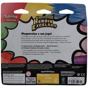 BLISTER TRIPLO POKÉMON MEGAEVOLUÇÃO 2.5 HEROIS EXCELSOS CHARMANDER COPAG 19 CARTAS