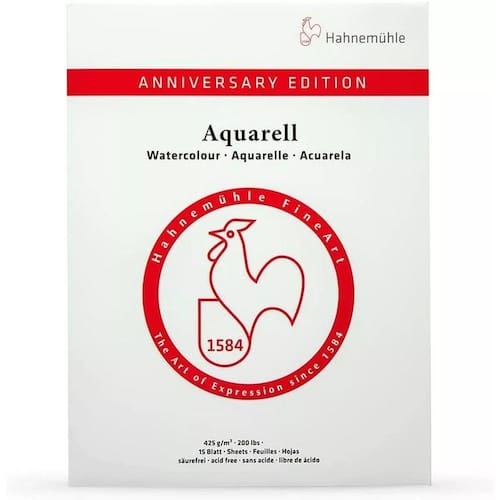 O bloco comemorativo aos 425 anos da hahnemühle fez tanto sucesso quando foi lançado em 2008 que acabou virando um clássico. O papel volumoso e rígido com aparência de cartão conquistou artistas profissionais e amadores no mundo todo. Sua superfície de textura fina permite um ótimo fluxo de cores e sua estabilidade de “cartão” suporta técnicas que usam bastante água. 100% alfa-celulose, livre de ácidos, ph neutro, alta resistência ao envelhecimento e vegano. Disponivel em bloco nos formatos 24 x 32, 30 x 40 e 36 x 48.